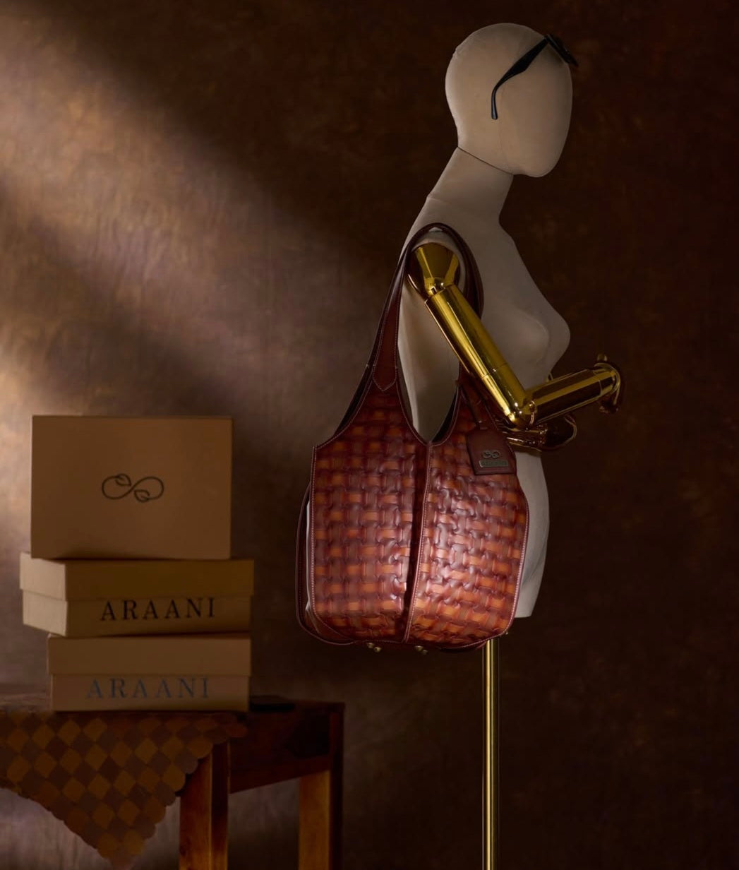 Handwoven in cow leather .