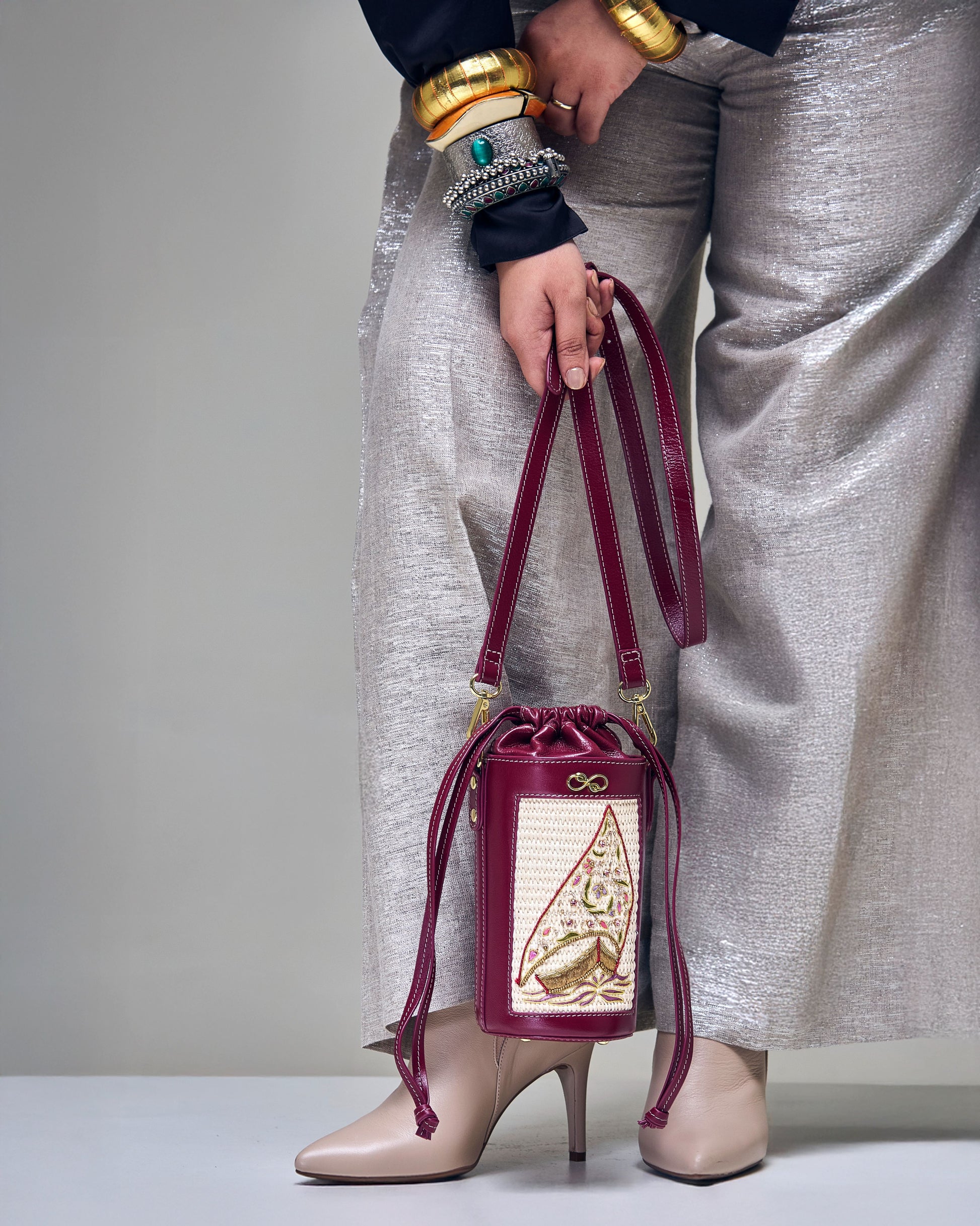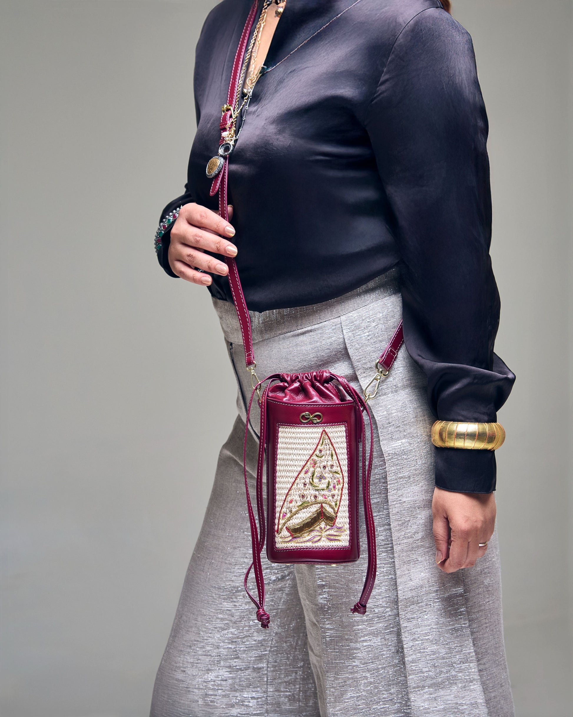Hand embroidered catamaran on raffia, framed by beautifully hand finished VT leather